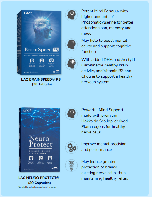Whether you are a student, a professional, or simply want to boost your cognitive abilities, LAC BrainSpeed® PS and LAC Neuro Protect® contain specially formulated ingredients tailored to enhance your brain's capabilities!