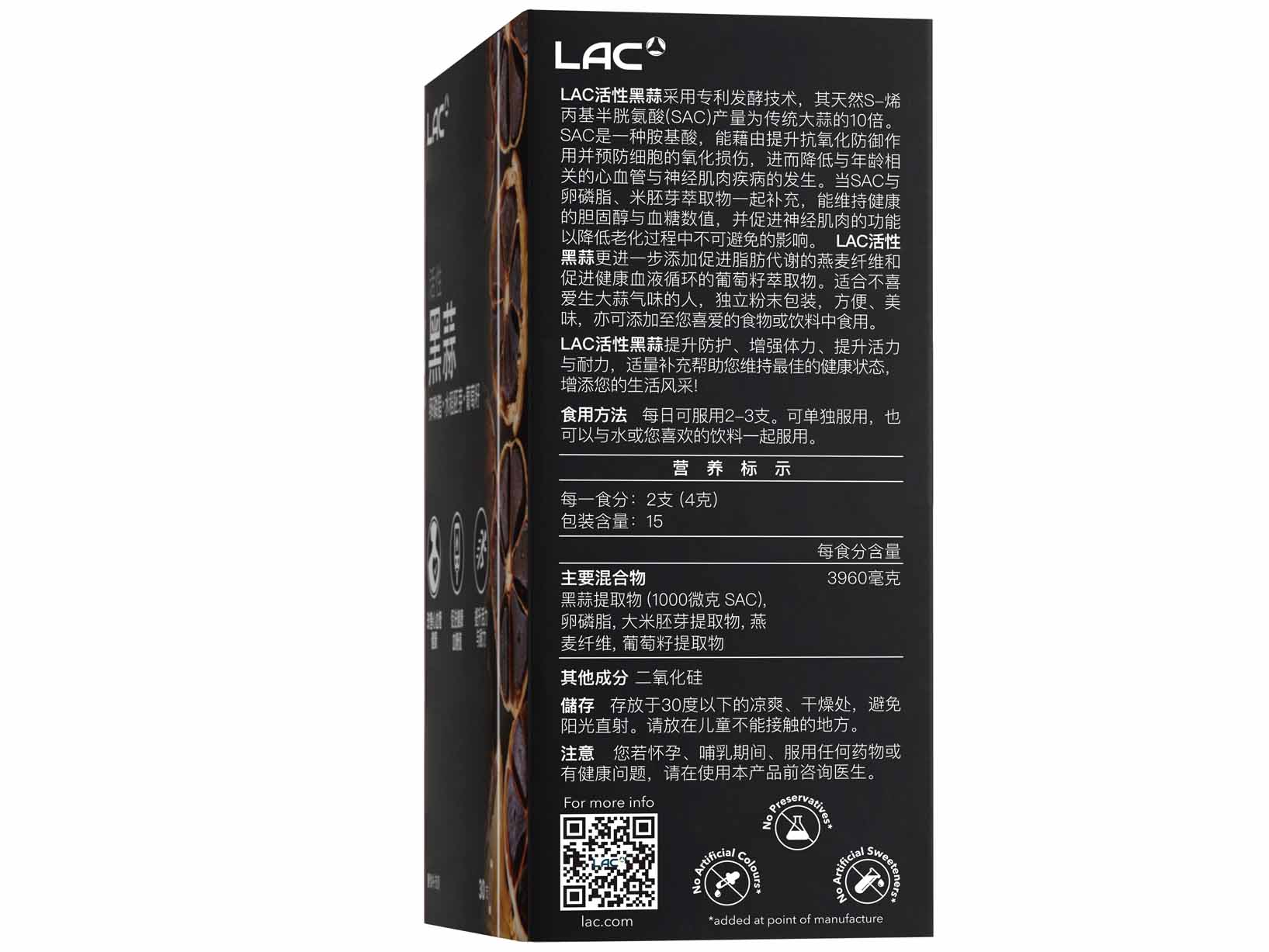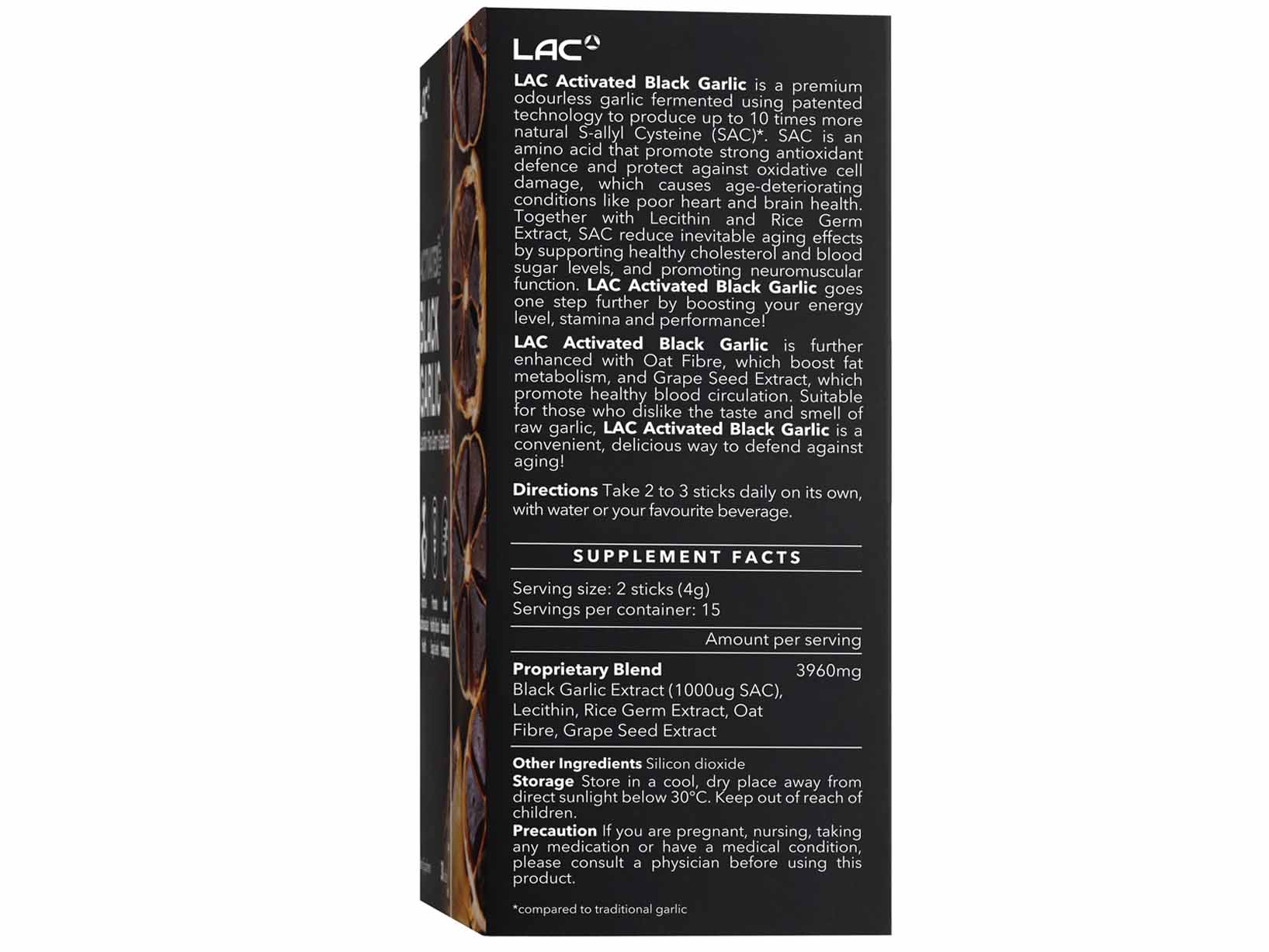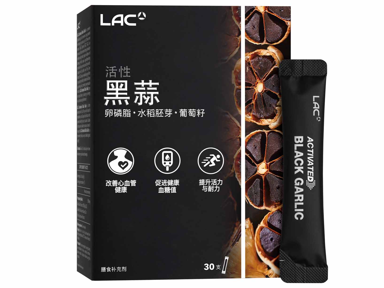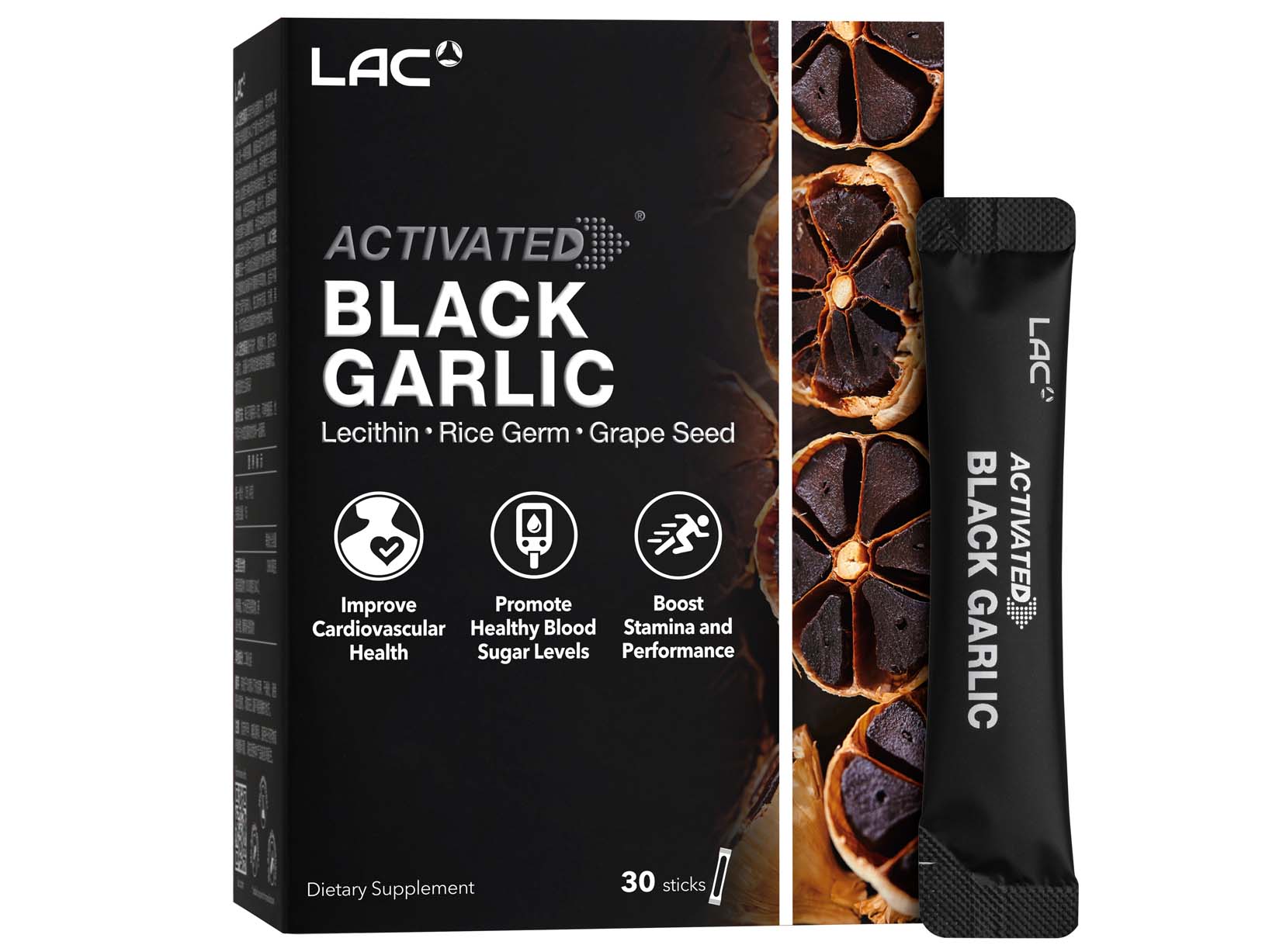 LAC ACTIVATED® Black Garlic – 10x More Natural S-allyl Cysteine (2g x 30 powder sticks)