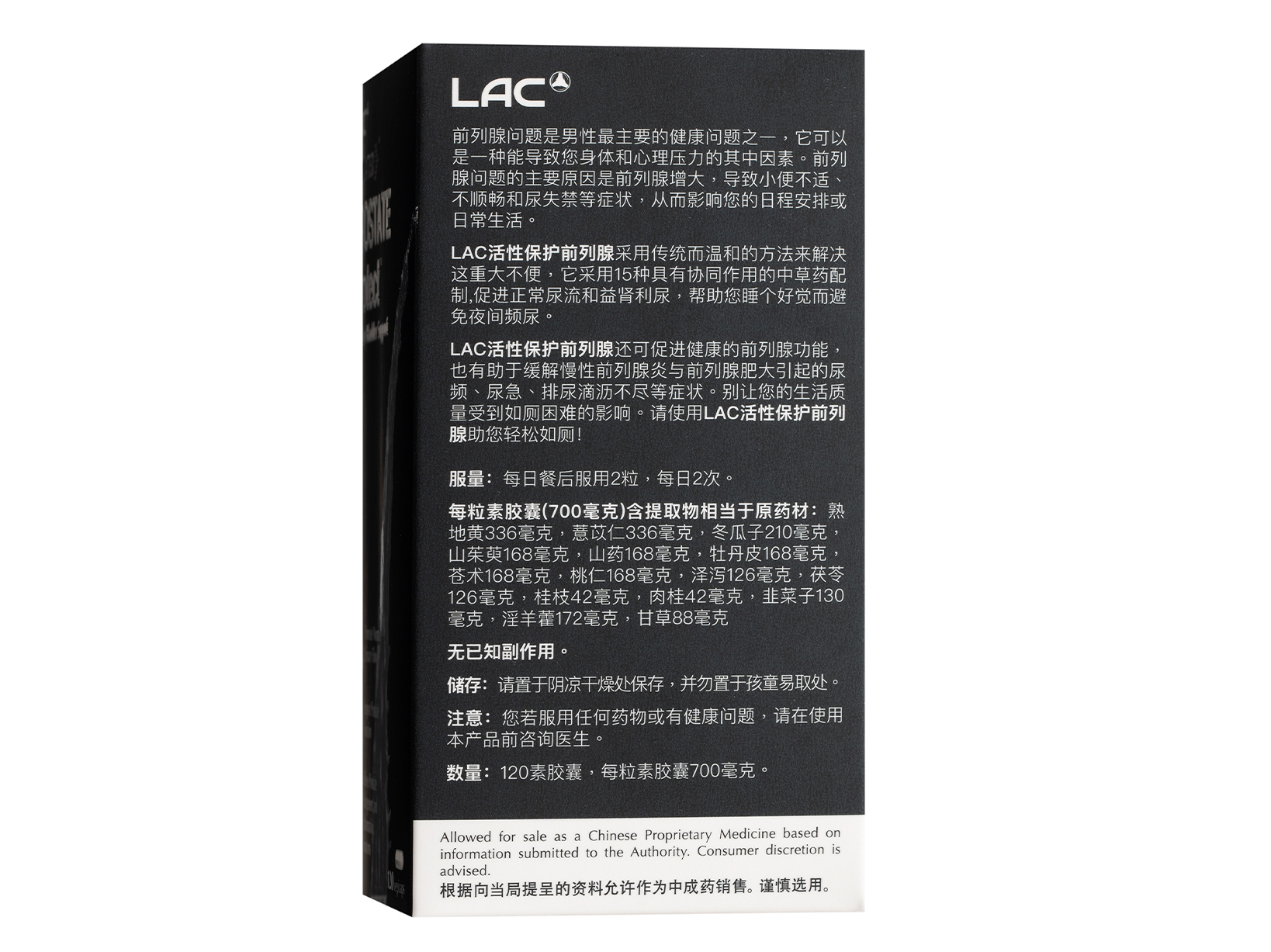 Works with LAC Activated Prostate Protect to prevent BPH and chronic prostatitis from recurring