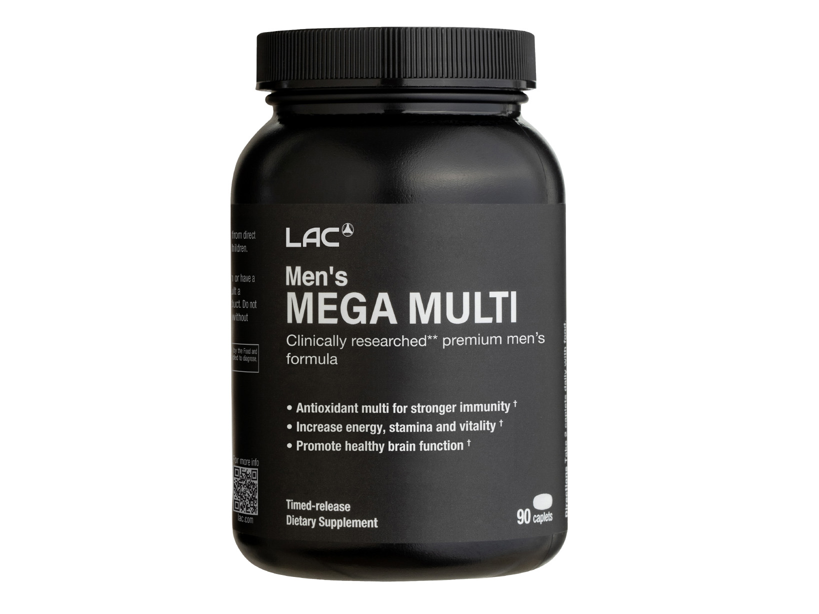 LAC Men’s Mega Multi is a premium blend with over 50 clinically-researched vitamins, minerals, and nutrients, sourced from antioxidant-rich fruits and vegetables, amino acids, and brain health blends. Unlike other formulas on the market, which contain fewer nutrients, LAC Men’s Mega Multi is specially formulated with a timed-release formula, allowing gradual absorption of essential vitamins and minerals throughout the day.