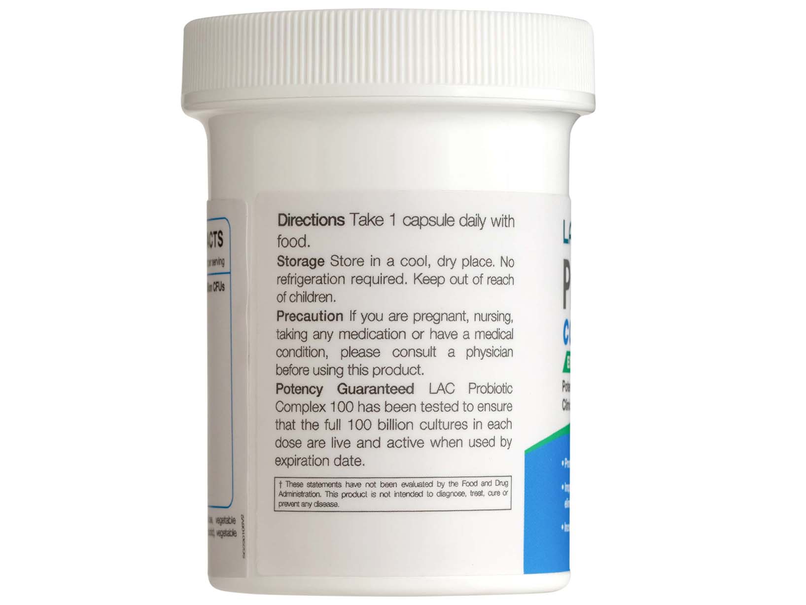 LAC Probiotic Complex 100 has been tested to ensure that the full 100 billion cultures in each dose are live and active when used by expiration date.