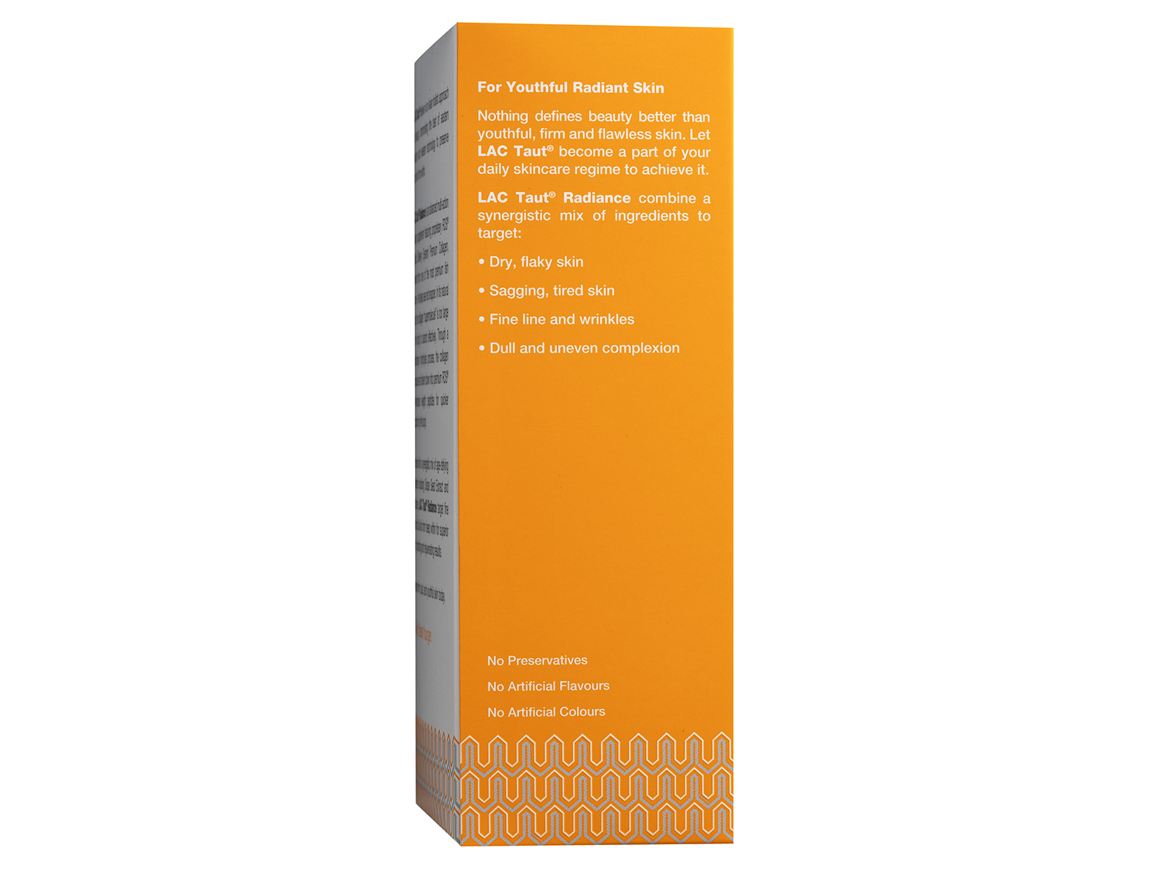 LAC Taut® Radiance is a collagen supplement designed to restore your skin’s natural glow, resilience, and clarity in ways that topical products alone cannot achieve! Each caplet contains 900mg of RDS® premium Red Snapper collagen, combined with powerful age-defying ingredients like Grape Seed Extract and Glutathione. Perfect for maintaining radiant skin, especially when travelling, this supplement complements your skincare routine and the full LAC Taut range for optimal skin health.