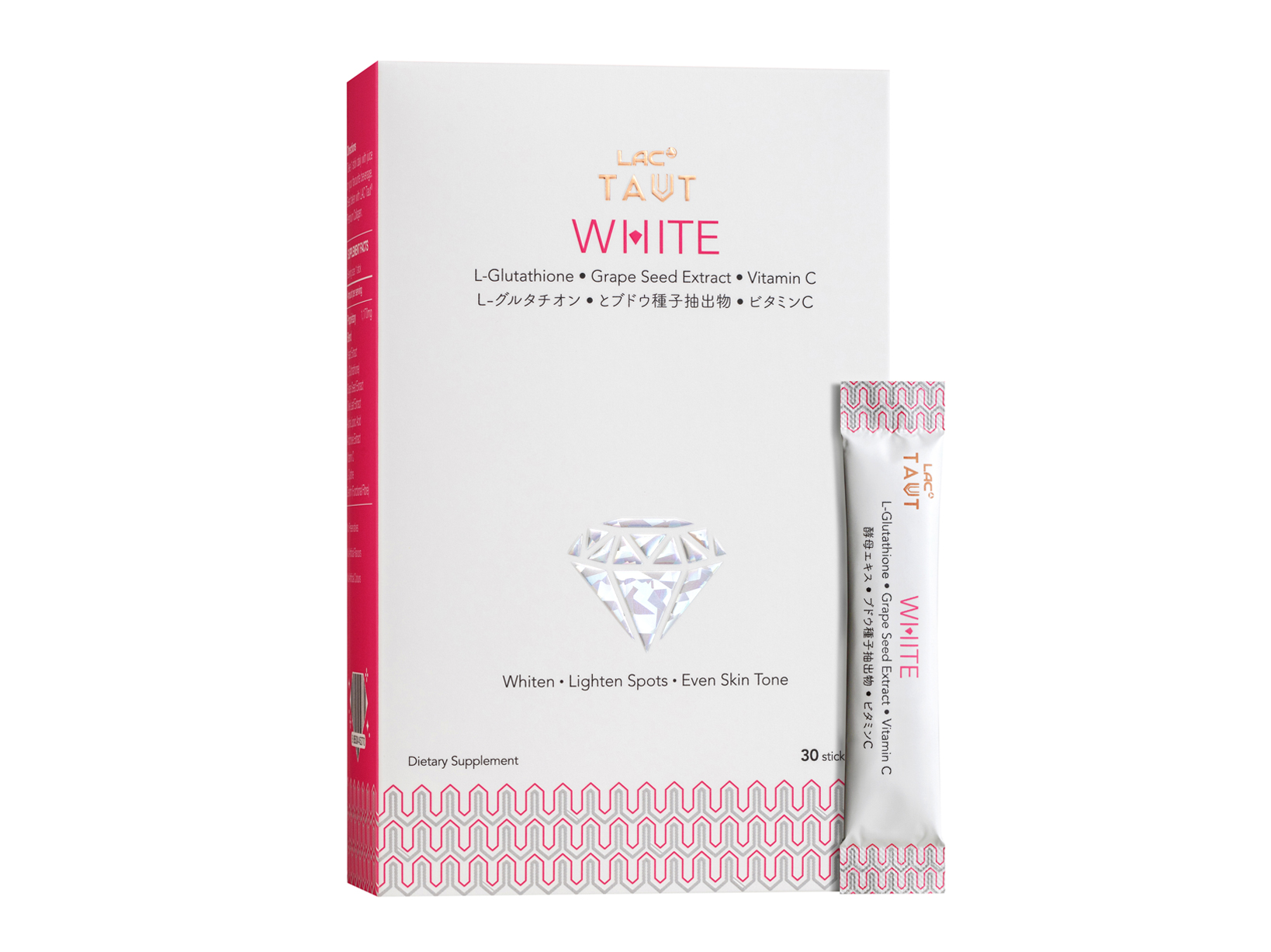 LAC Taut® White is an innovative skin whitening supplement that brightens the skin, naturally illuminating your skin from within for translucent, brilliant and crystal clear skin. With an advanced formula of highly concentrated antioxidants and skin-revitalizing ingredients such as L-Glutathione, Grape Seed Extract, Olive Leaf Extract, Vitamin C and Artichoke extract, LAC Taut White effectively controls the formation of dark spots and imperfections, resulting in a visibly clearer and brighter complexion.